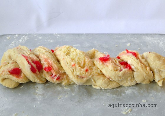 20. Pão doce com coco e cereja: rendendo até dois pães grandes e levando como recheio coco e cereja, esta receita de pão doce fica pronta em até uma hora e meia e é superfácil de ser feita. Você vai precisar de vários ingredientes, por isso, anote todos eles para não esquecer. O recheio fica por conta de leite, essência de baunilha, coco e cerejas em calda.